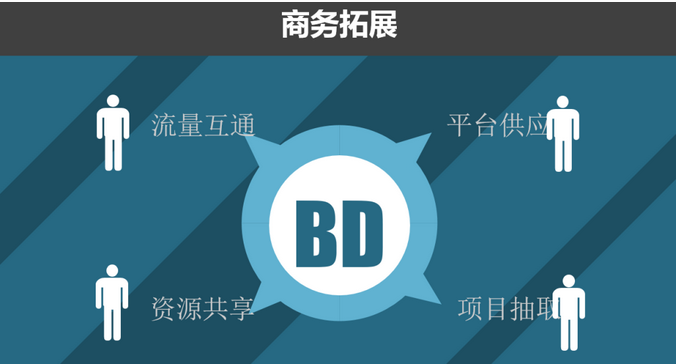 所謂BD,就是Business Development的英文縮寫,業(yè)務拓展。主要工作內(nèi)容是尋求合作伙伴,洽談商務合作,協(xié)調(diào)公司外部資源,維護業(yè)務推進。大公司會專門的業(yè)務部門負責,但其實BD和運營是不可切分的。